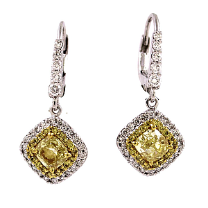 Dangle Earrings Showcasing A Pair Of Cushion Cut Yellow Diamonds In Gold