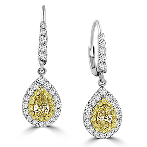Pear Shape Yellow Diamond Dangle Earrings