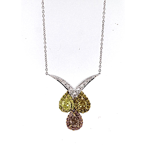 A Fantastic 3-Stone Pendant-Chain Styled In 18K Yellow, White And Rose Gold.