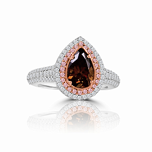 1.28ct. Pear Shape Orangy Diamond Halo Ring