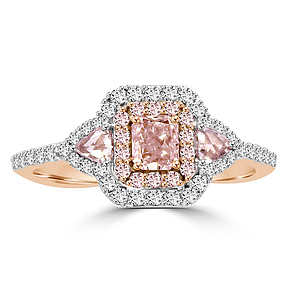 Oval Yellow Diamond with Pink Diamond Halo Ring