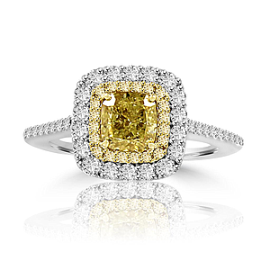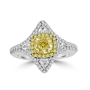 1 Carat Cushion Shape Yellow Diamond Statement Ring