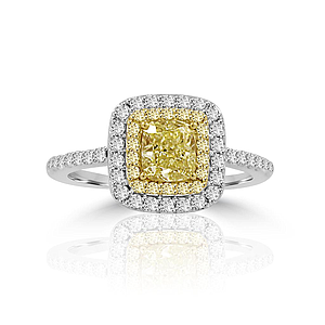 Yellow Cushion Diamond Halo Ring