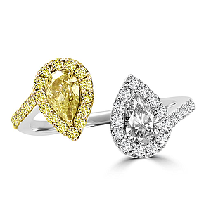 Yellow and White Pear Shape Diamond Split Shank Ring