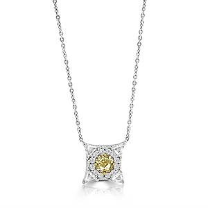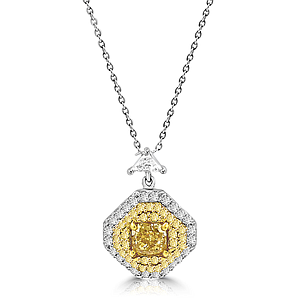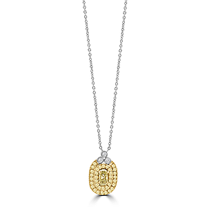 Yellow Cushion Center Diamond Halo Pendant Chain