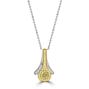 Yellow Pear Shaped Diamond Halo Pendant Necklace