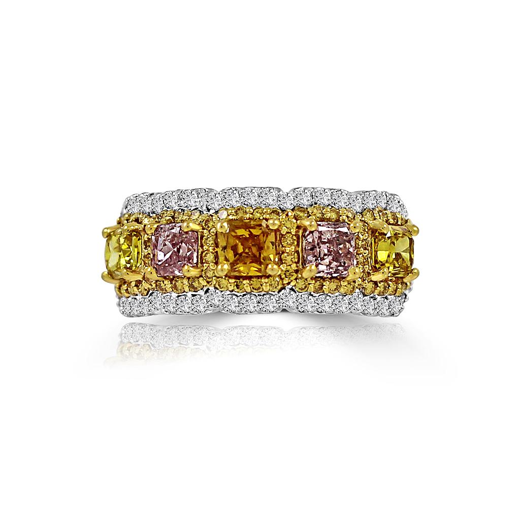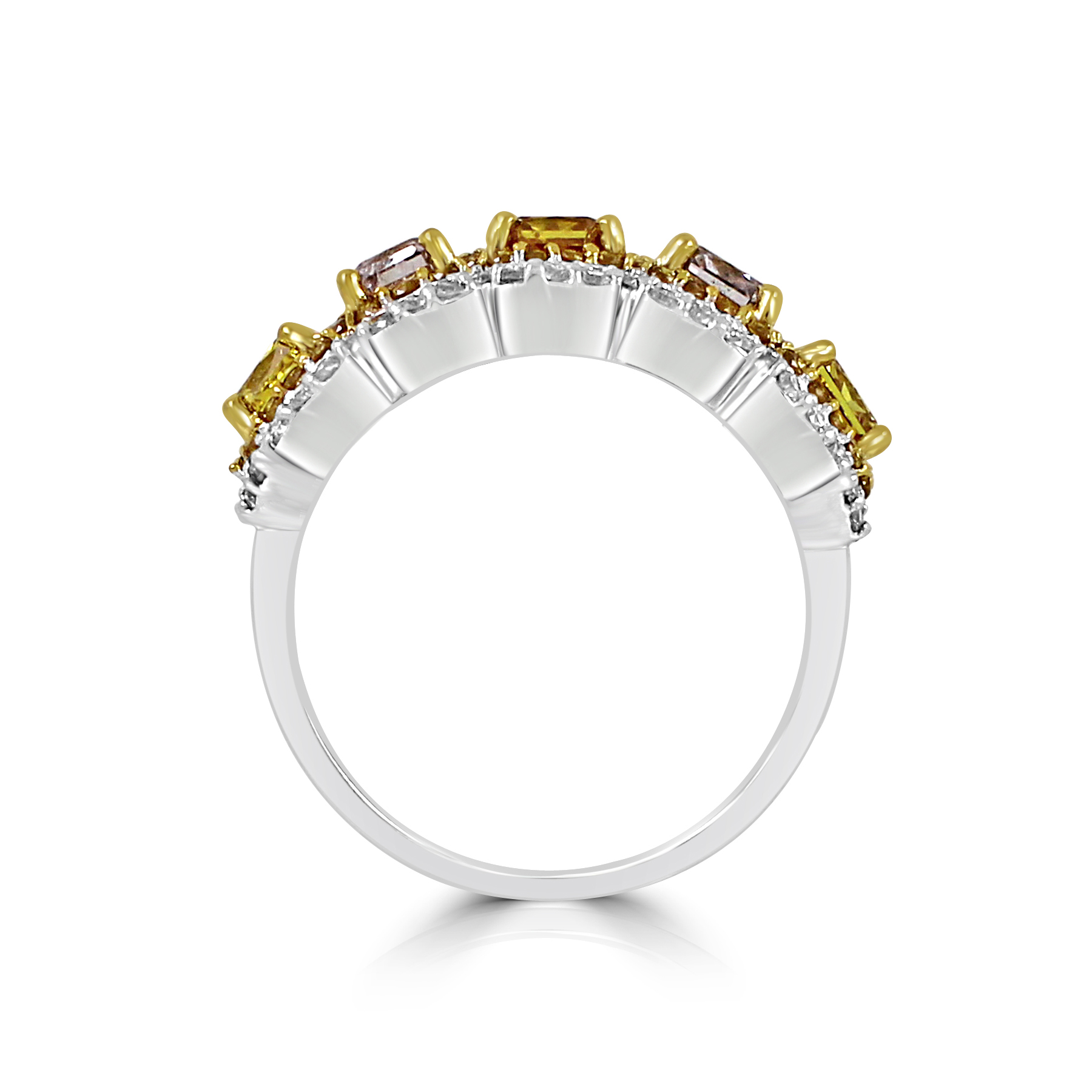 Natural Fancy Color Diamond Ring accented wtih Natural Yellow and White Diamond melles set in 18K gold