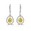 Dangling earring featuring yellow cushion center diamonds and surrounded by a halo of yellow and white melee diamonds, set in white gold 18 karat.
