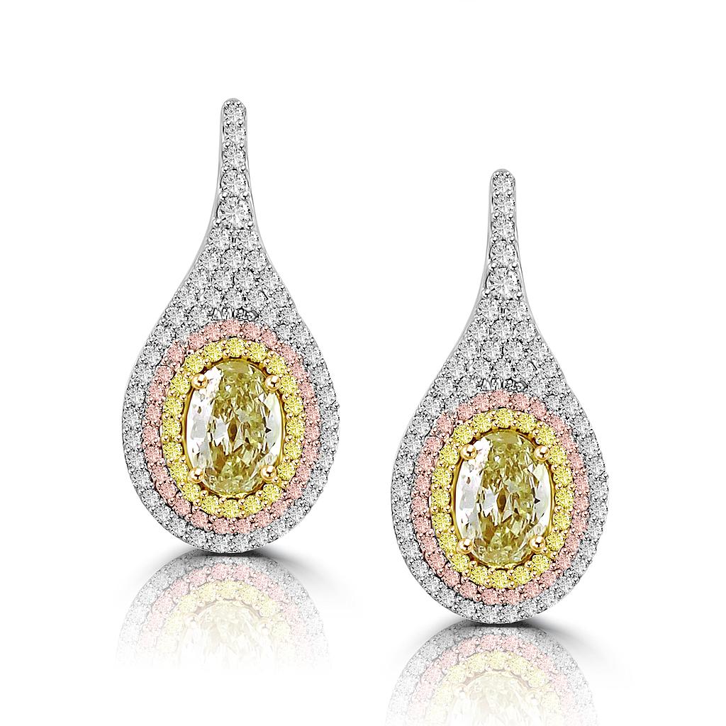 Oval Yellow Diamond Bottle Earrings accented with Natural Yellow Pink and White Diamonds with 2.88cts. total diamond weight set in 18k gold.