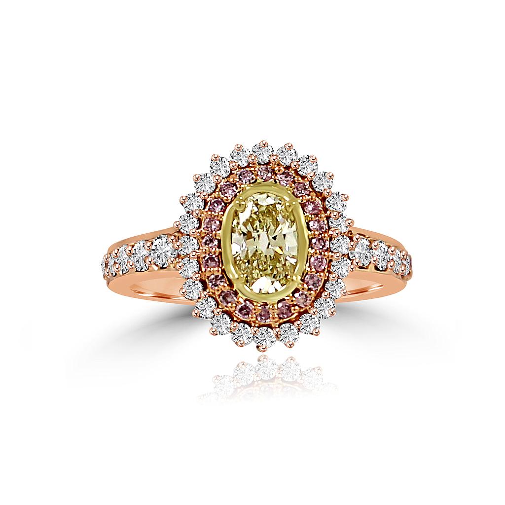 Oval Yellow Diamond with Pink Diamond Halo Ring in Pink Gold
