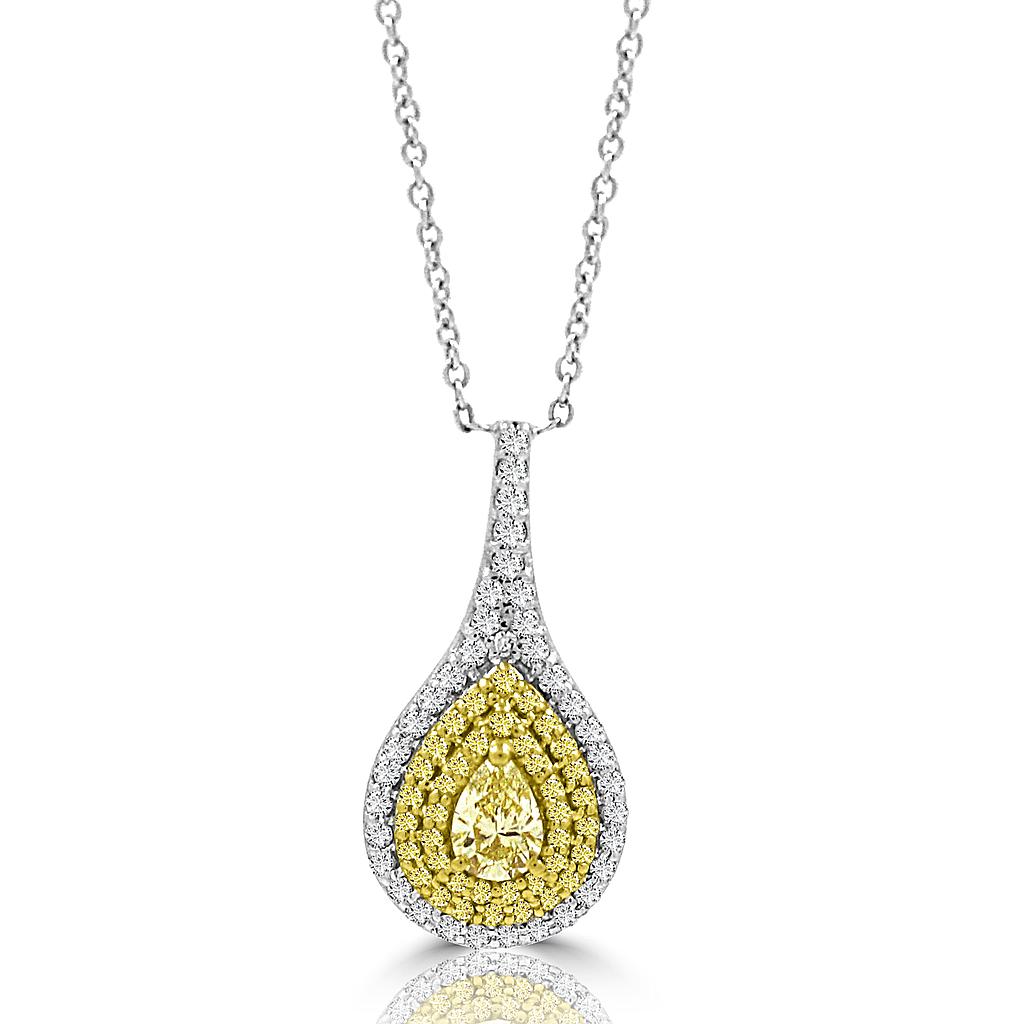 Pear shape Yellow Diamond Pendant Necklace surrounded with Natural Yellow and White Diamond melees set in 18k gold