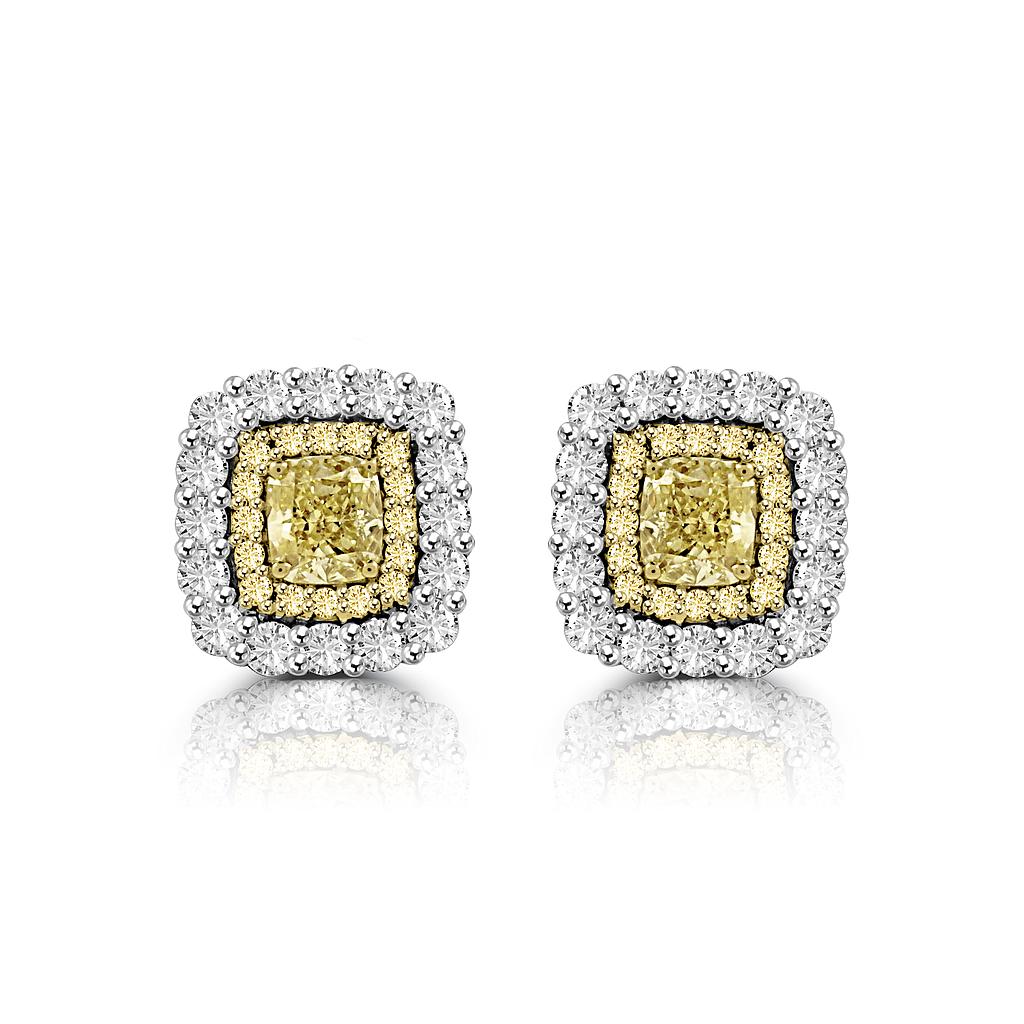 Yellow Diamond Tops Earrings with halo of Natural Yellow and White Diamond melees set in 18k gold